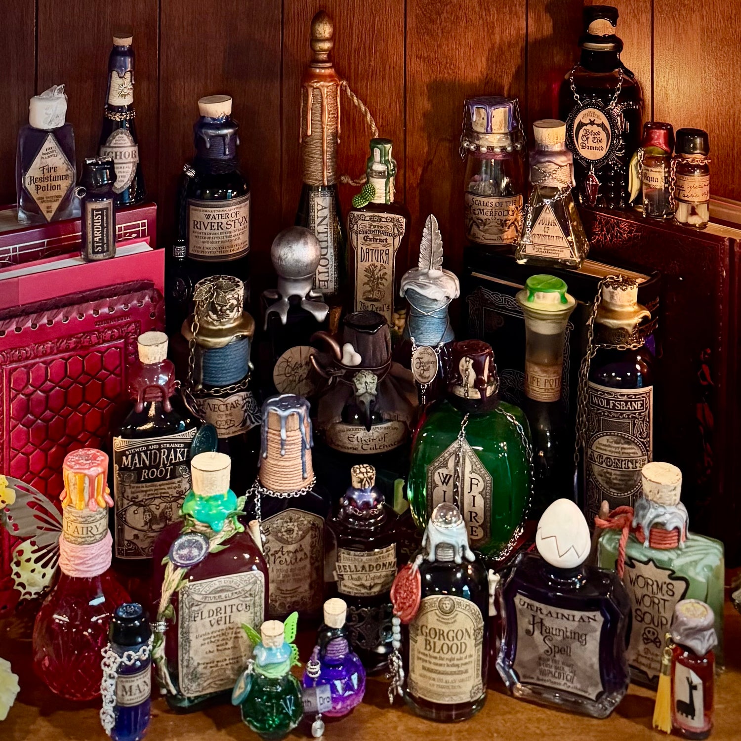 We hold potions back from each drop for a variety of reasons, and now we're ready to let them go! We only have one or two of most of these, but have partial batches of others. We'll be adding to this collection as we finish up some of the extras around the shop.