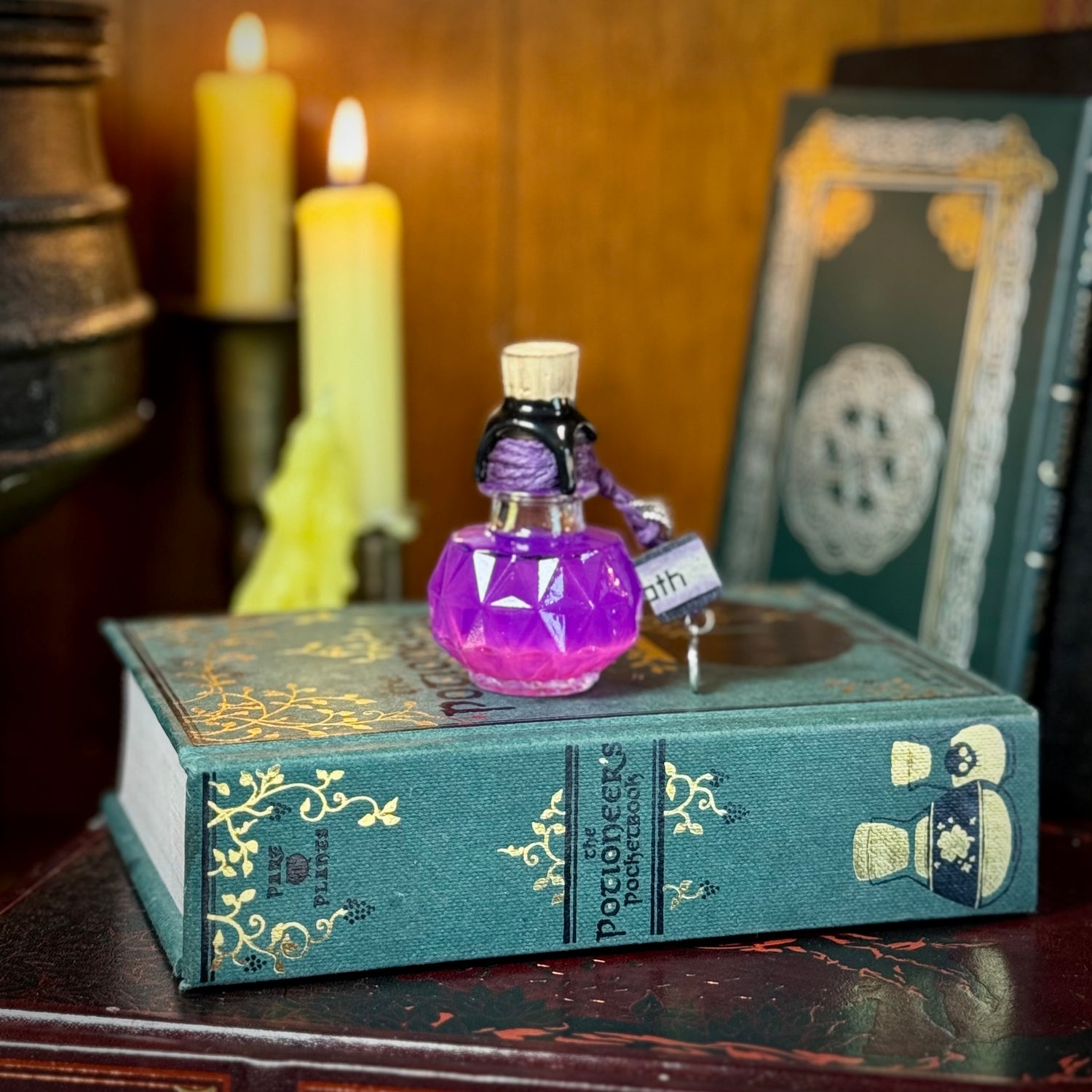 I create life size, realistically magical potions that look like they live in Rivendell, or a wizened old alchemists workshop. They’re intended to look old and worn, while still pretty. I hand age the labels, so they are faded and stained. Some are more stained and older looking than others, your collection will look authentic.