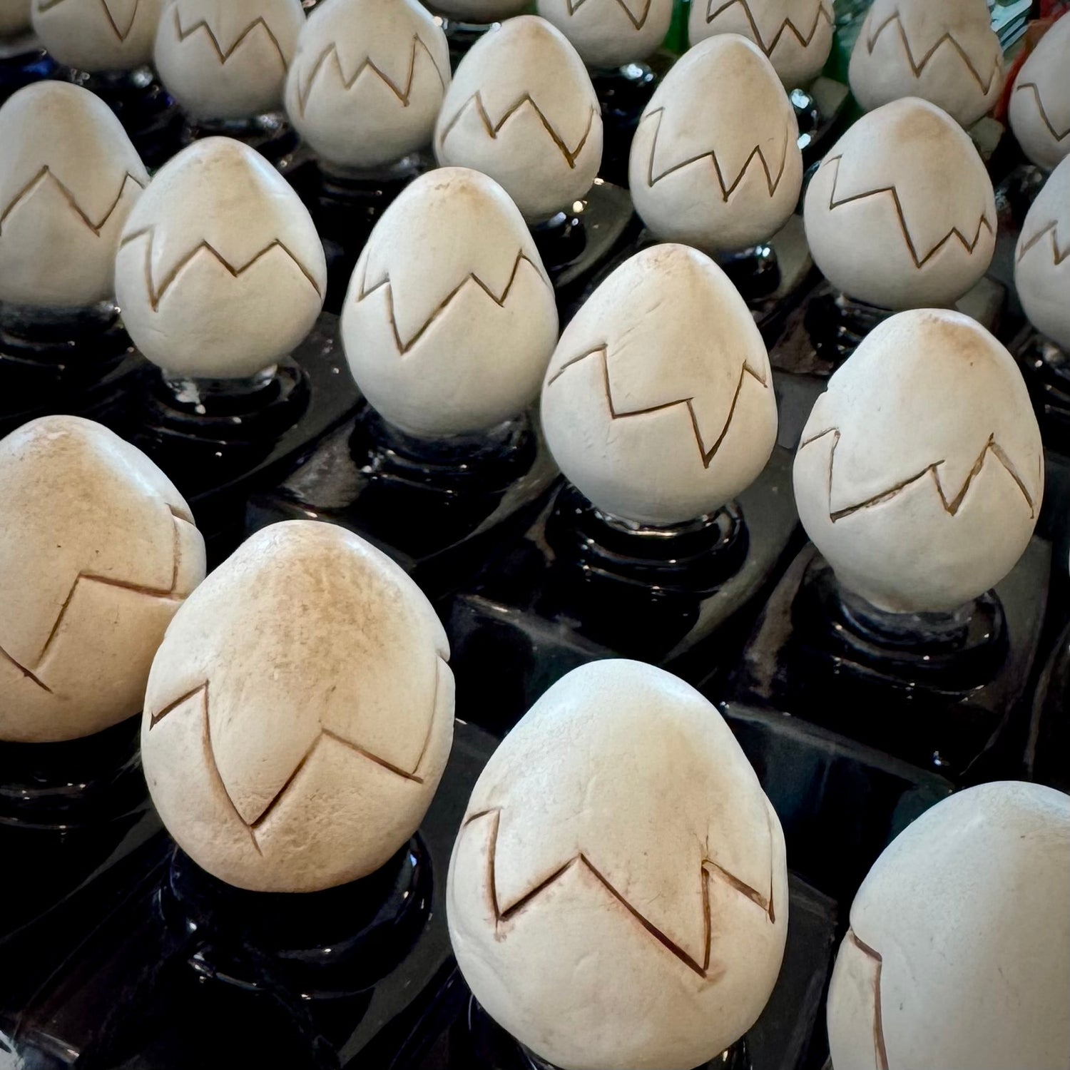 -Each egg stopper was hand sculpted and aged, and truthfully, they were all laid by a different chicken, if you get my meaning! They are similar in size and shape, but all different.